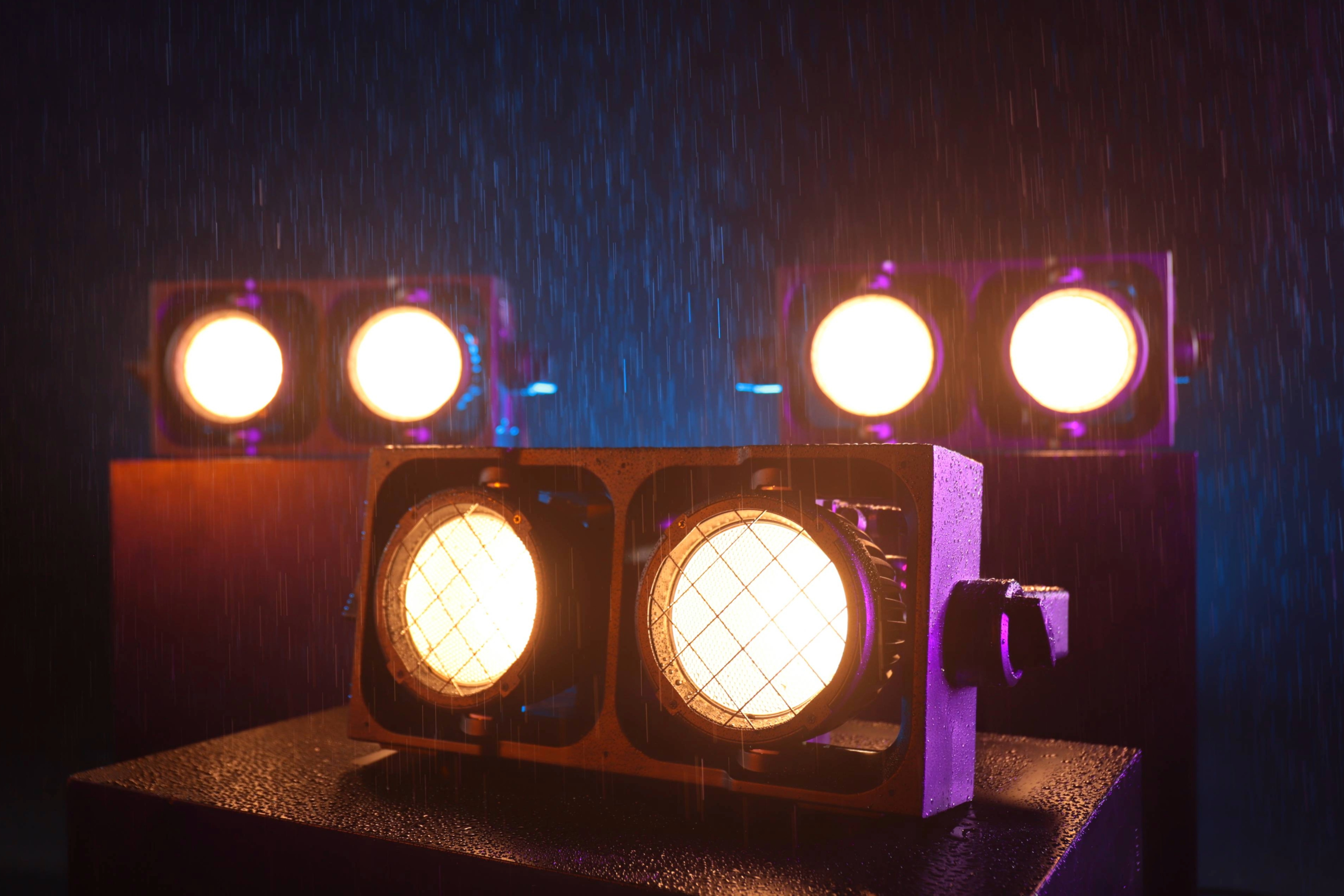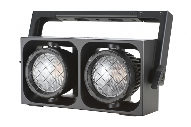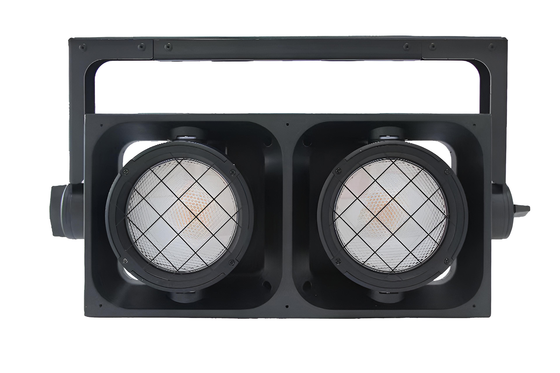 Introducing the Professional IP65 Full-Color 2-Lite Blinder, featuring dual 300-watt LED COB RGB-Amber and Warm White capabilities. With a wide 120° beam angle and 0-100% linear dimming, this blinder offers adjustable color temperature to suit any lighting scenario.
