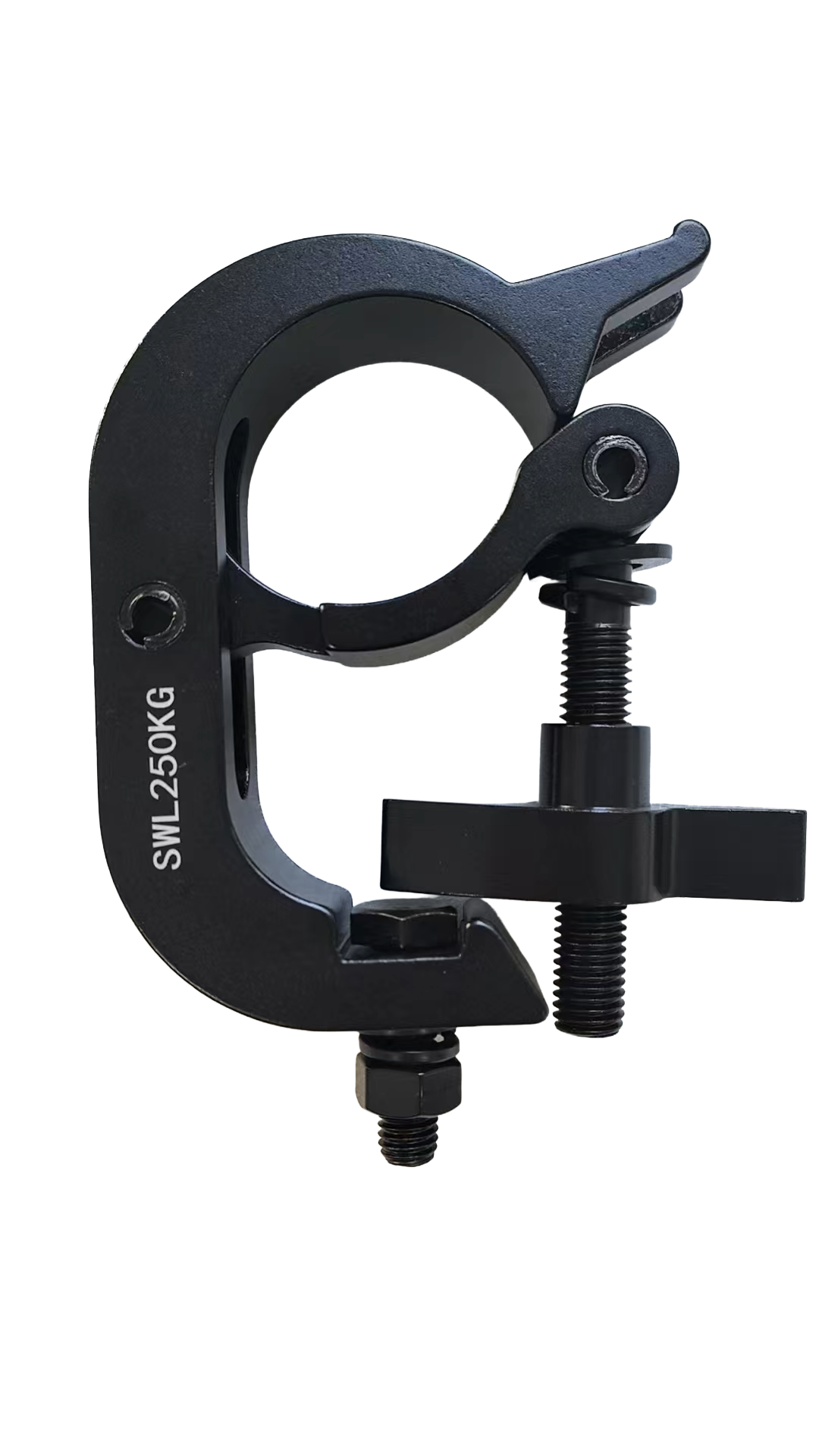 Professional clamp for fixtures lifting weight 200 kg - 42-52mm , type Screw Clamp, production model JC-ZN09B30 , TUV Certified,black powder coating.