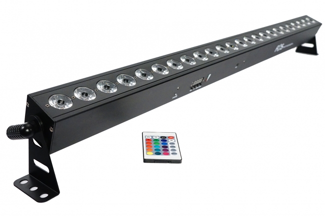 Battery operated led bar, 24x3 watt RGB 3in1 led, 25 degrees, 0-100 dimmer, pixel control, Lithium Ion battery, 12 hours single color operation, 103cm, powercon In/out.