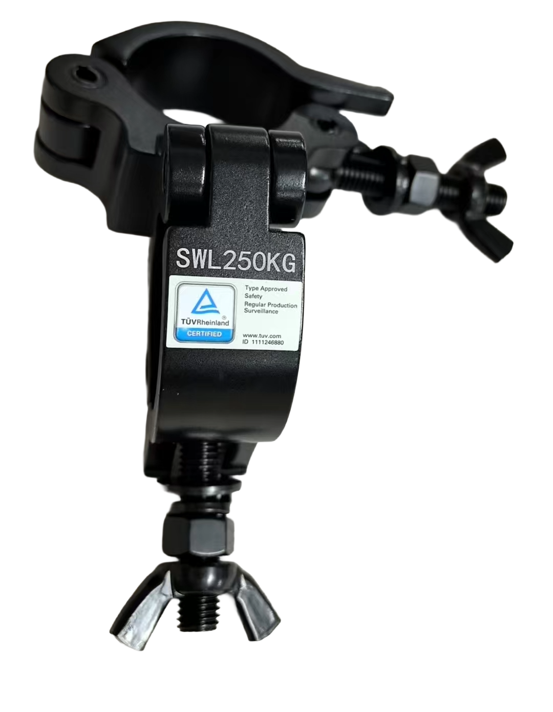Professional clamp for fixtures lifting weight 200 kg - 42-52mm , type Screw Clamp, production model JC-ZN08B30GROUP , TUV Certified,black powder coating.