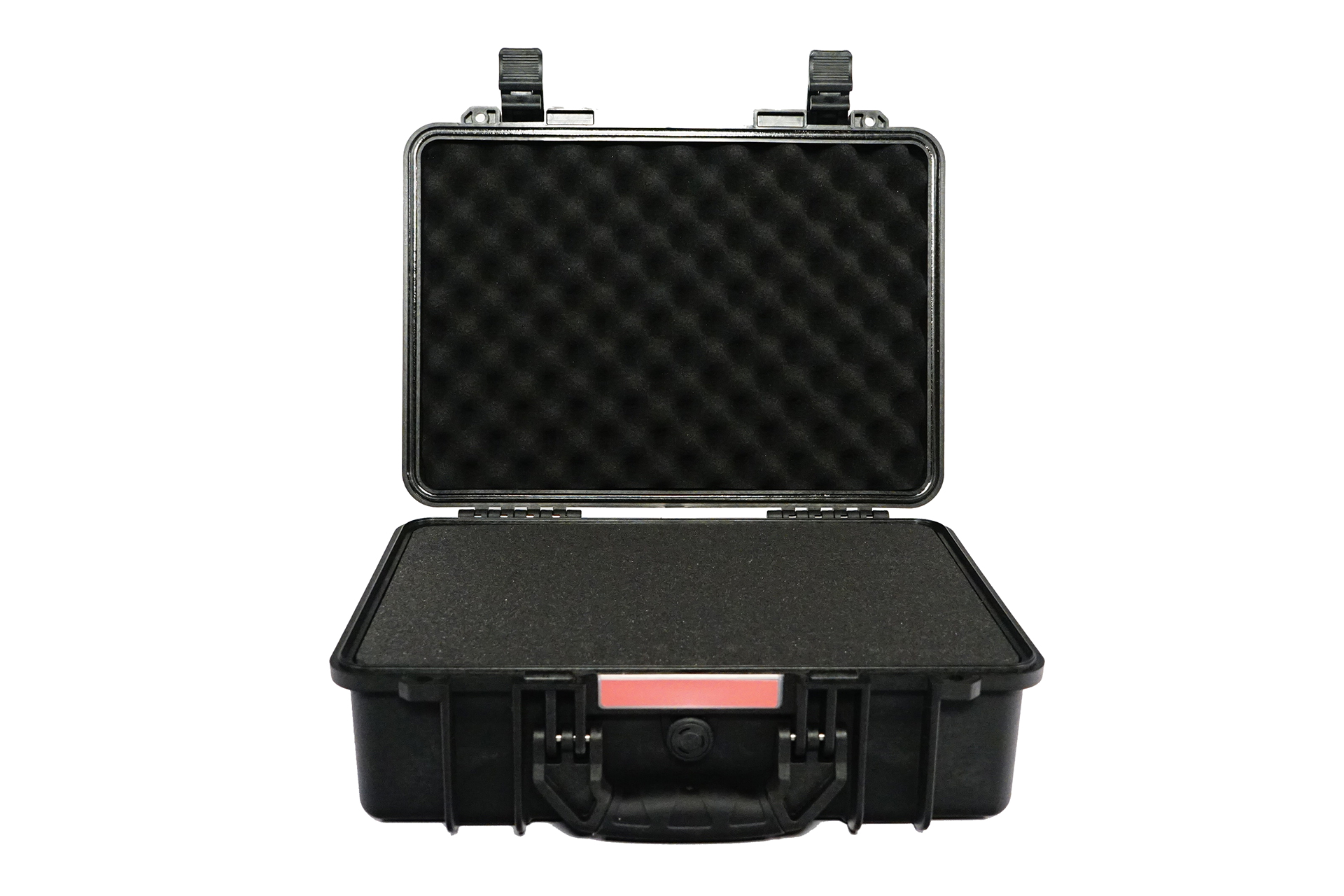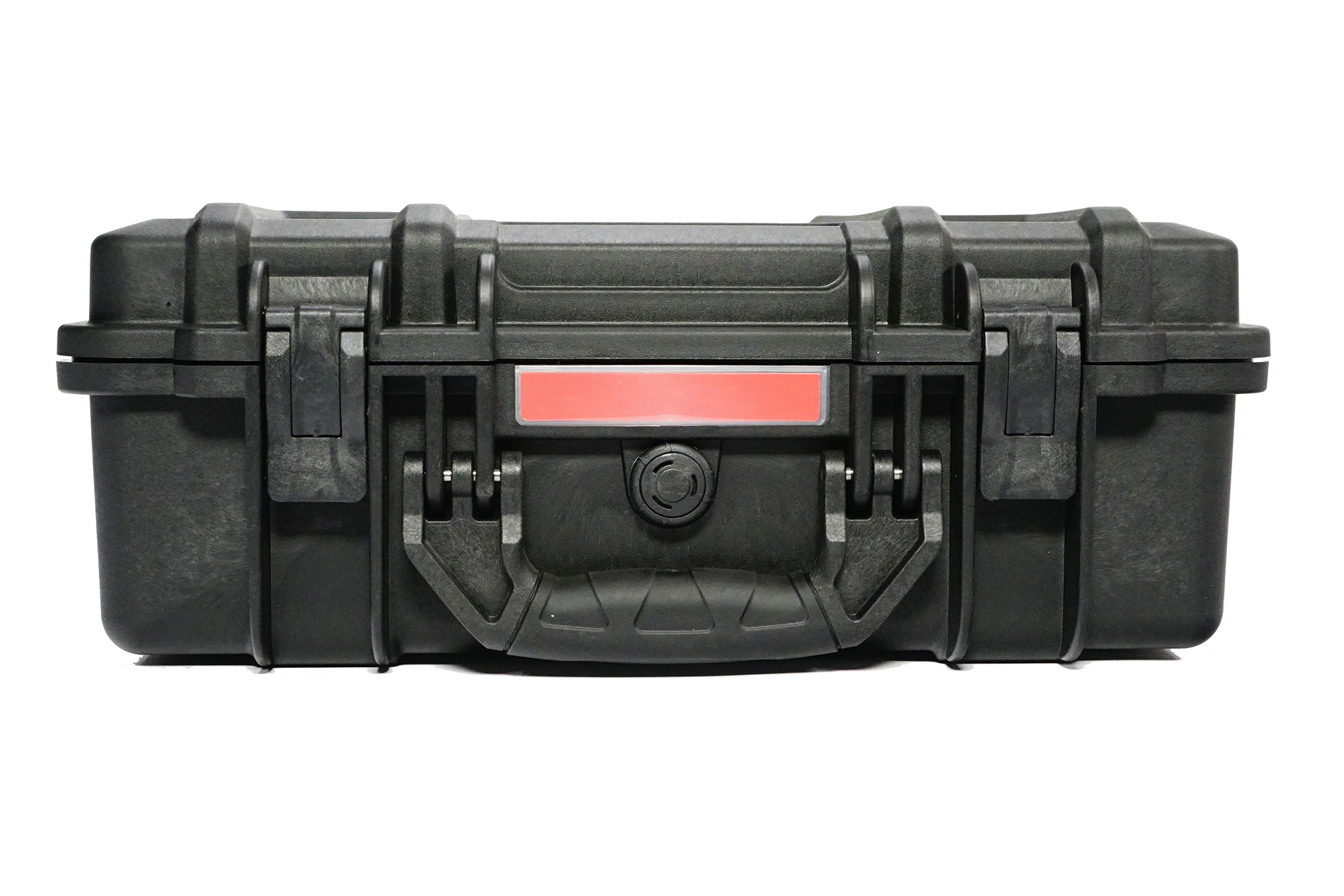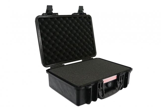 Weatherproof IP67 plastic case with pre cutted foam for general applications, material TSU19 resin, external dimensions 46x36x18 cm , inside dimensions 43x30x16 cm, lid depth 4.7 cm, 2.3 kg