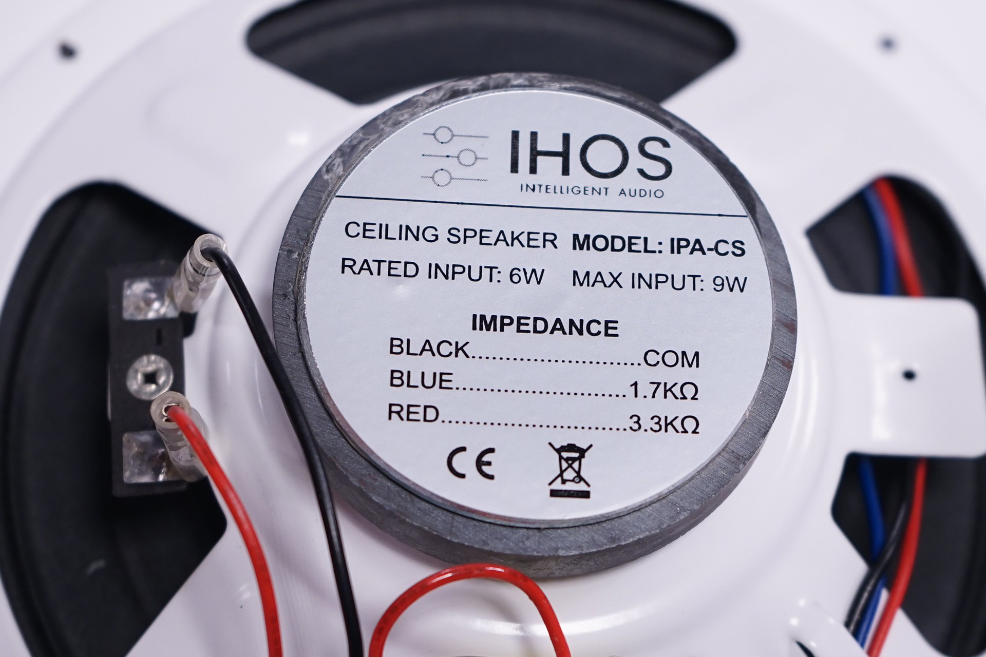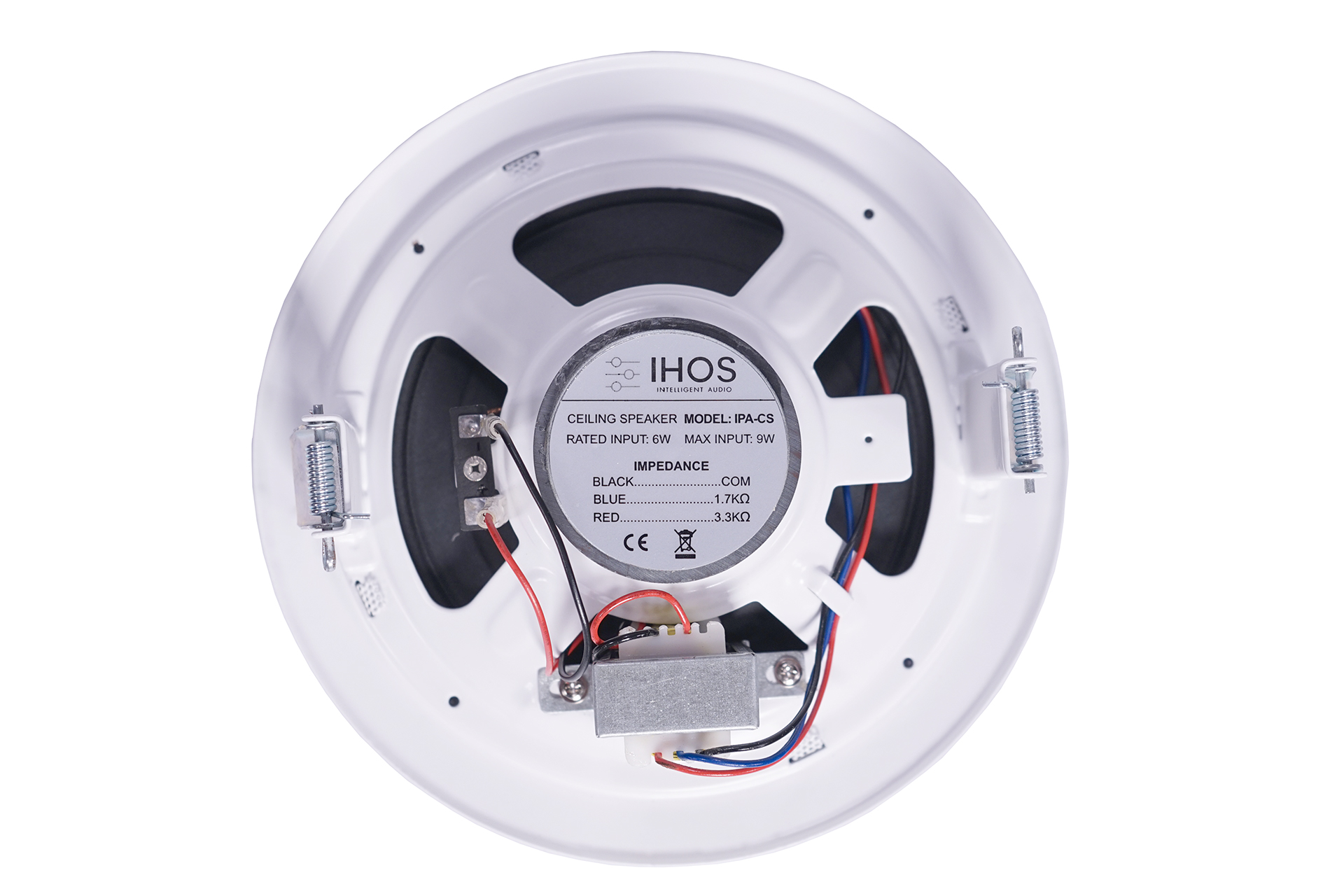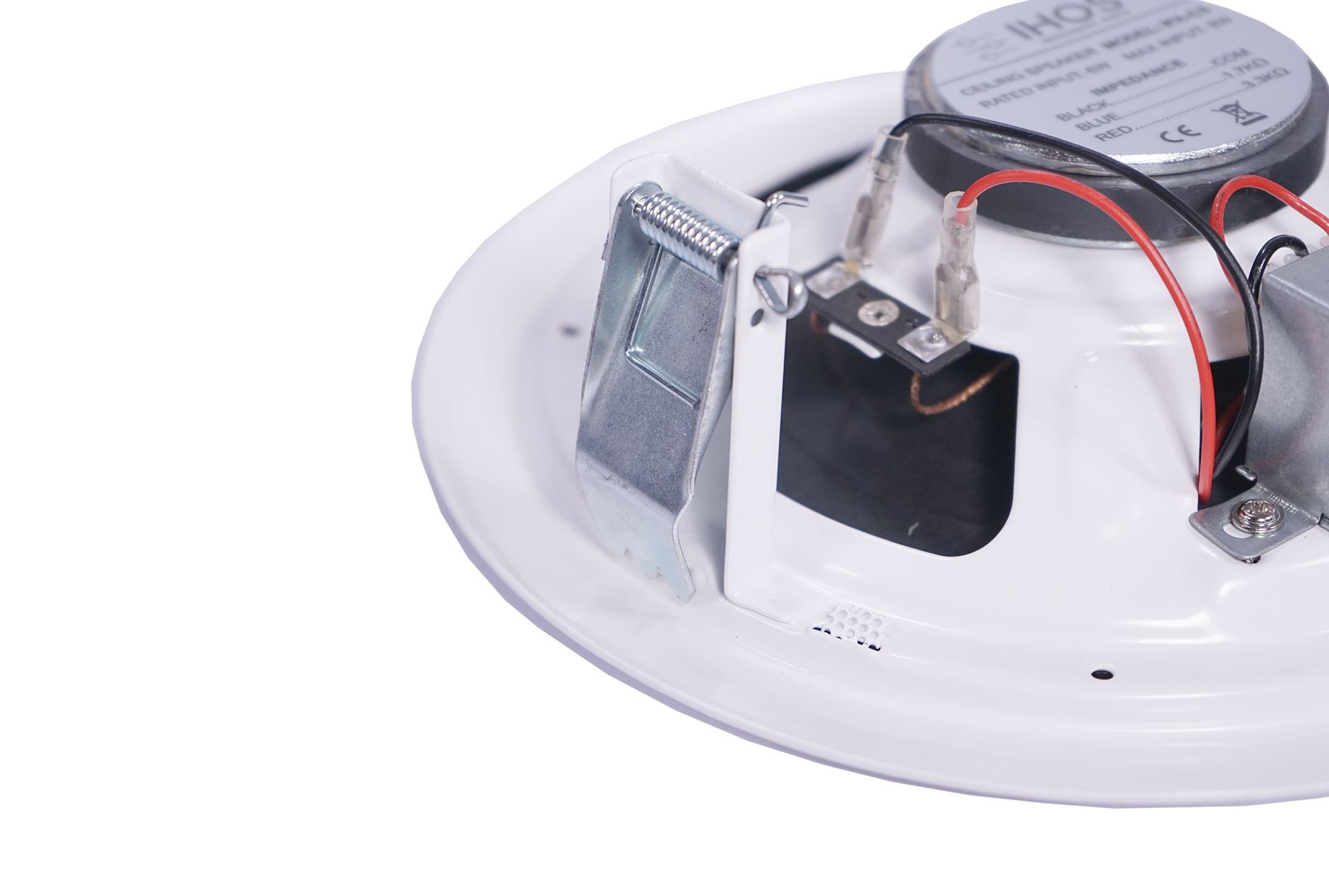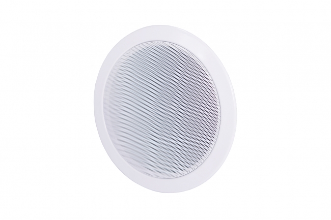 Ceiling Speaker (Quick-Mounting Type), 6.5? twin cone, 6W transformer, rated input 6w, 100/70V, 90dB spl. Frequency Response 100Hz-18kHz, white steel construction, ? 170 x 75H mm, Max Ceiling Thickness:25mm.