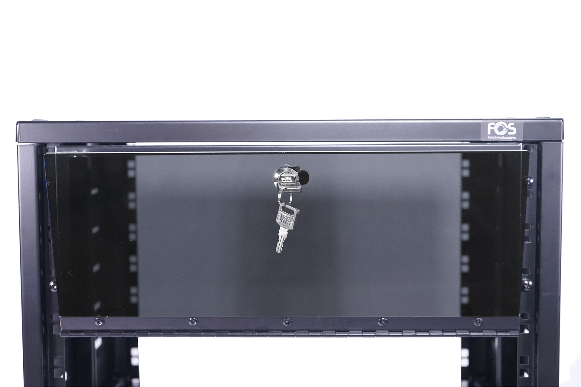 Security Rack Cover 4U, Plexiglass, with keylock, black powder coating, depth 17.7cm, width 48.26cm, height 4.5cm.
