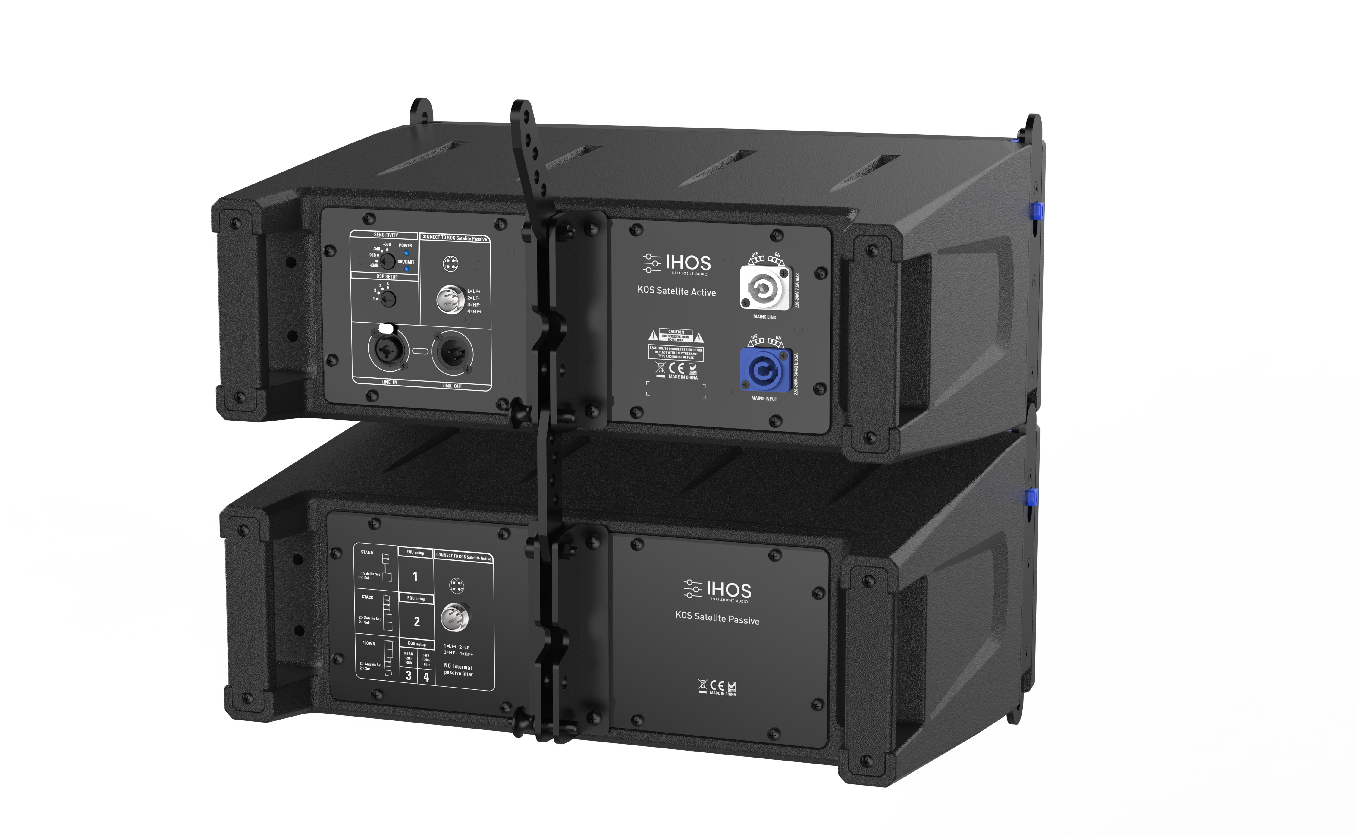 KOS System 2 Line Array system that includes 4 pcs KOS ABS Active Line Array speakers, 2 pcs KOS Sub Plywood professional active bandpass subwoofer 12 inches, On ground mode suitable for 150-200 audience people.