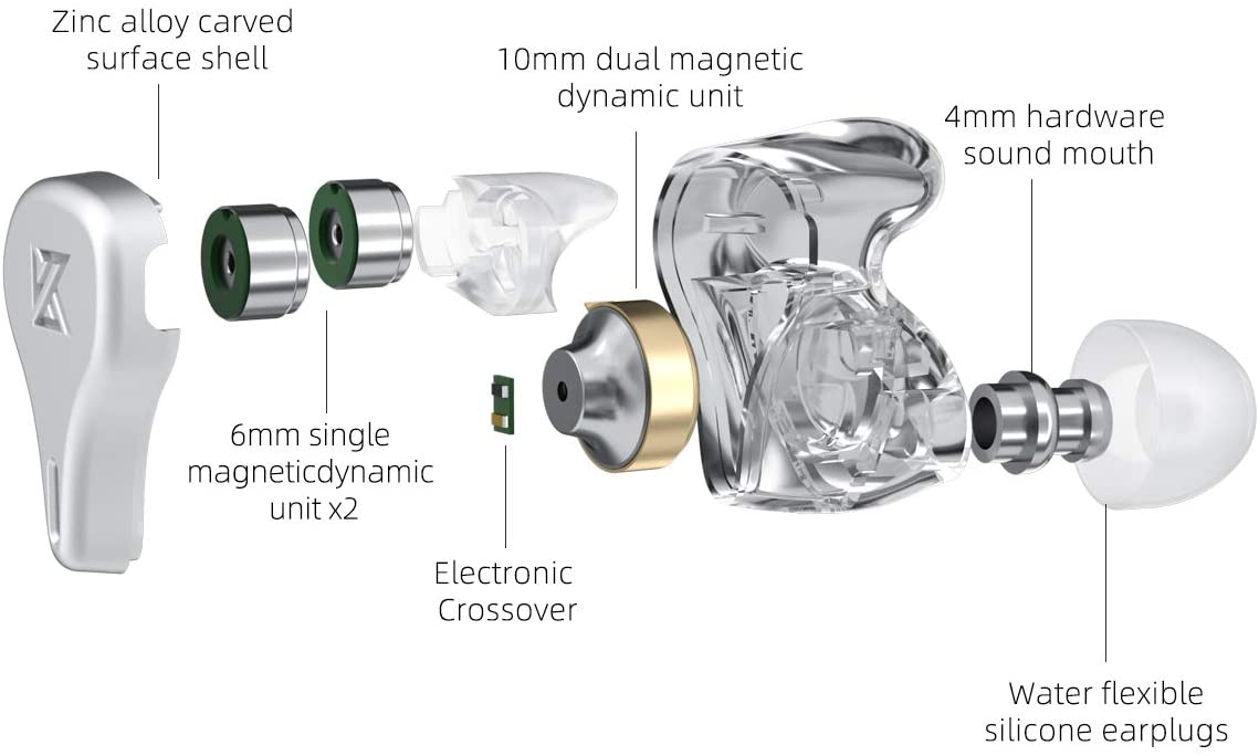 KZ DQ6 has a 10mm dual magnetic dynamic unit + two 6mm single magnetic dynamic units, brand-new structure, powerful analytical power, clear vocals, distinct musical instruments, and rich musical details can be displayed.